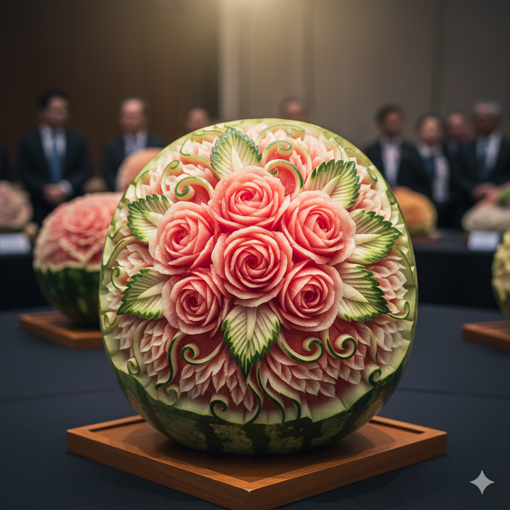 So next time you see a carved rose blooming from a watermelon, pause and admire it. It may be eaten within the hour, but its memory—like all art—lasts forever.