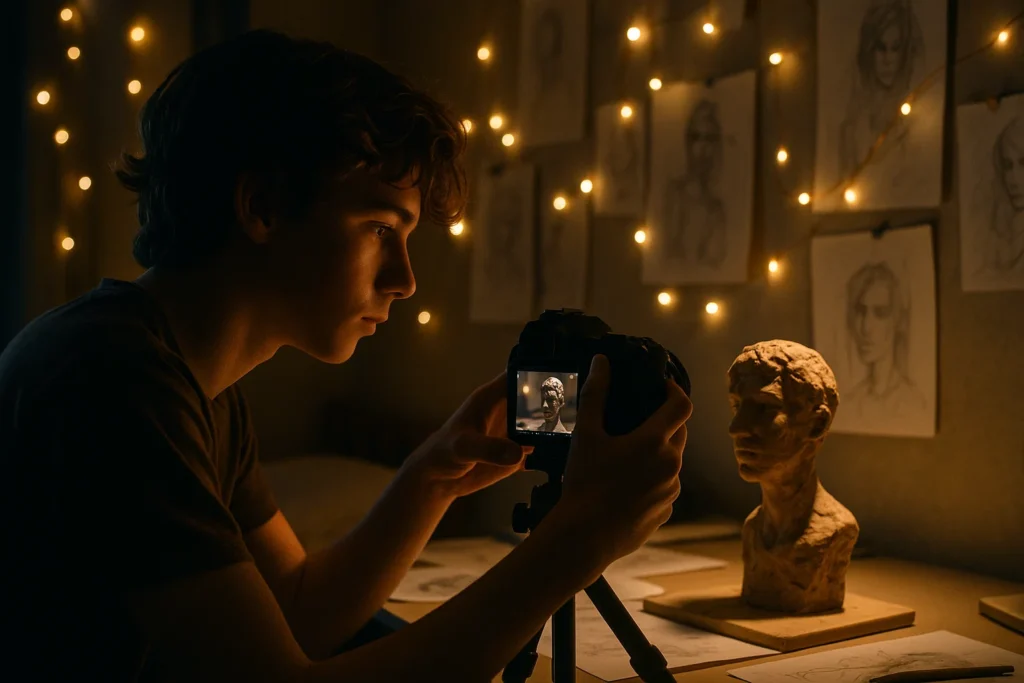 - A student combining photography with handmade crafts, using a mid-range lens to build a portfolio.